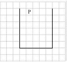 На бесконечном поле имеются две одинаковые вертикальные стены и одна горизонтальная, соединяющая нижние концы стен. Длины стен неизвестны. Робот находится в одной из клеток, расположенных между верхними краями вертикальных стен. На рисунке указан один из возможных способов расположения стен и Робота (Робот обозначен буквой «Р»).