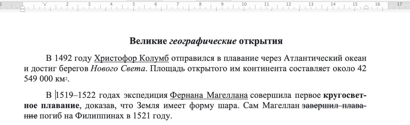 Дан текст, созданный в текстовом процессоре. Определите, какие параметры форматирования использованы в этом тексте.