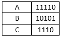 По каналу связи передаются сообщения, содержащие только имена переменных: A, B и С, а также знаки арифметических действий (+, -, *, /). Для передачи используется двоичный код, удовлетворяющий условию Фано. Кодовые слова для имен переменных известны: