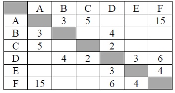 Между населёнными пунктами A, B, C, D, E, F построены дороги, протяжённость которых (в километрах) приведена в таблице.