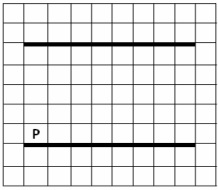 На бесконечном поле имеются две одинаковые горизонтальные параллельные стены, расположенные друг под другом и отстоящие друг от друга более чем на 1 клетку. Левые края стен находятся на одном уровне. Длины стен неизвестны. Робот находится в клетке, расположенной непосредственно над нижней стеной.На рисунке указан один из возможных способов расположения стен и Робота (Робот обозначен буквой «Р»).