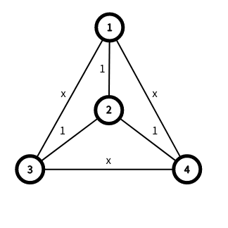 Нужно посчитать \(\prod_{w \in P} gcd(x, a_{w}) \mod (10^{9} + 7)\), где \(P\) — множество вершин, лежащих на пути из \(u\) в \(v\). Иными словами, вычислите произведение \(gcd(x, a_{w})\) для всех вершин \(w\) на пути от \(u\) до \(v\). Так как произведение может быть большим, выведите его по модулю \(10^9+7\). Здесь \(gcd(s, t)\) обозначает наибольший общий делитель \(s\) и \(t\).