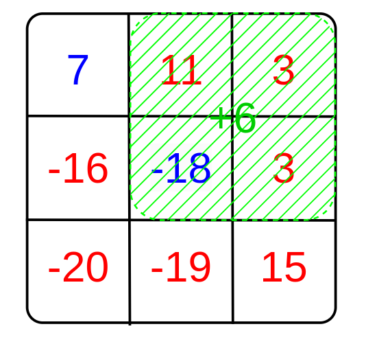 В первом примере после изменения силы шаманов равны (2, 3). Тогда ответ  - 1, так как сумма сил шаманов перед первым шаманом равна 0, а перед вторым равна 2.