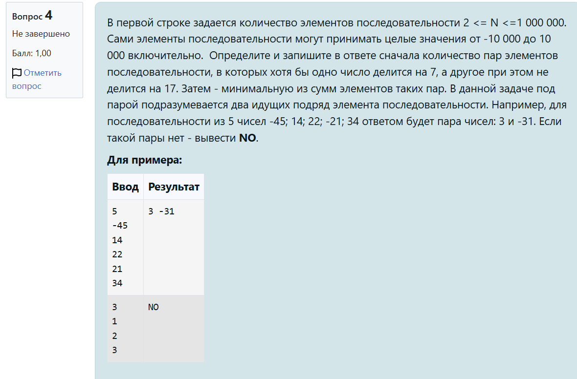 Задача на обработку последовательности без использования списков