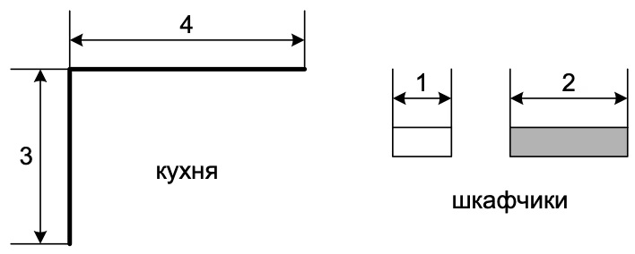Тогда возможно шесть планировок кухни. Возможные планировки показаны на рисунке.