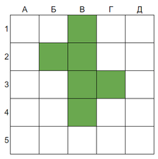 Влад раздобыл карту местности, разбил её на квадраты и закрасил на ней интересующий его участок. Получилась схема, изображённая на рисунке 2. Ему необходимо сделать фотографии всех закрашенных квадратов. Теперь он хочет написать программу для дрона, поставить дрона в какойнибудь закрашенной клетке и запустить его.