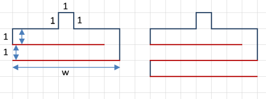 Ваше выражение должно давать правильный ответ для любых натуральных значений w > 2 и h >1. Например, для приведённых на первом рисунке w = 7 и h = 2 значение выражения должно быть равно 25, а для приведённых на втором рисунке w = 7 и h = 3 значение выражения должно быть равно 33.
