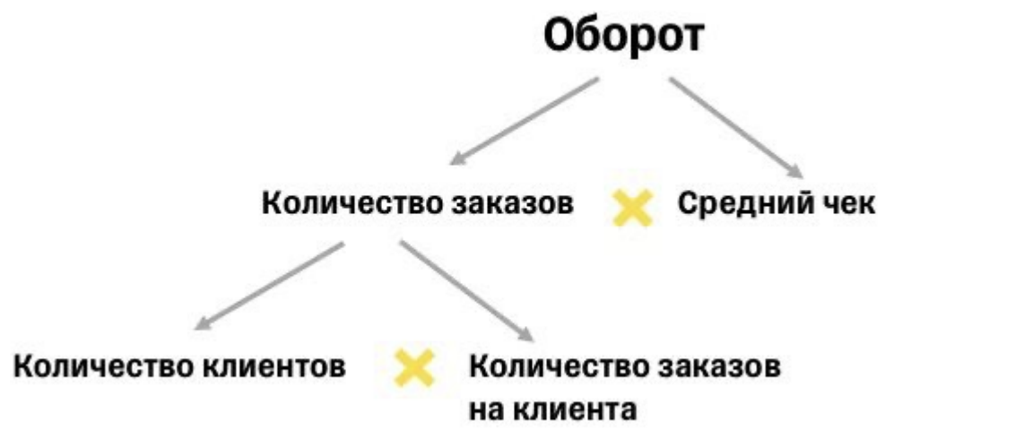 Вы работаете в сервисе доставки готовой еды, и вам поручили проанализировать показатели потенциальных партнеров для их подключения к сервису. Ниже представлено дерево метрик: