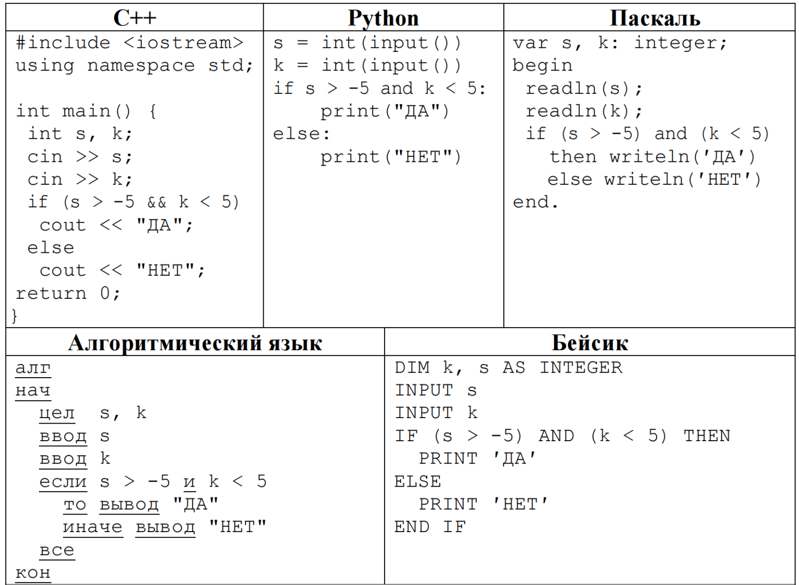 Было проведено 9 запусков программы, при которых в качестве значений переменных вводились следующие пары чисел (s, k):