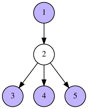 В первом примере вершины \(1, 3, 4, 5\) не соединены. До вершины \(2\) можно дойти за один шаг от вершины \(1\).
