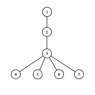 Ваша задача — добавить минимальное количество ребер таким образом, что длина кратчайшего пути из вершины \(1\) до любой другой вершины не превышает \(2\). Заметьте, что вы не можете добавлять петли и кратные ребра.