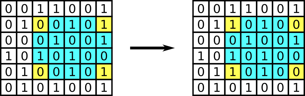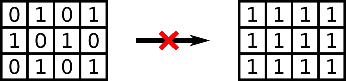 Даны две матрицы \(A\) и \(B\) размера \(n \times m\), каждая состоит только из \(0\) и \(1\). Рамзес может сколько угодно раз применять к матрице \(A\) следующую операцию: взять любую подматрицу матрицы \(A\), содержащую хотя бы две строки и два столбца, и инвертировать значение в её углах (то есть все углы подматрицы, в которых раньше стоял \(0\), после операции будут содержать \(1\), а все углы подматрицы, в которых раньше стояла \(1\), после операции будут содержать \(0\)). Требуется ответить, можно ли из матрицы \(A\) получить матрицу \(B\).