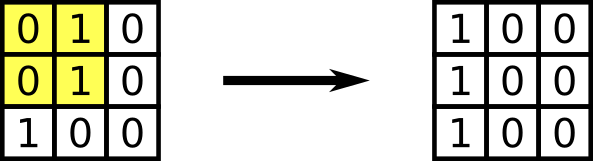 Пример операции. Выбранная подматрица выделена голубым и желтым, ее углы выделены желтым. Так как Рамзес не хочет выполнять эти операции вручную, он просит вас ответить на этот вопрос.