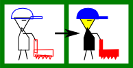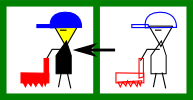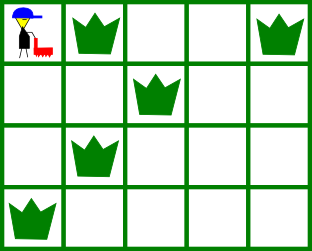 Вы не можете выходить за пределы поля. Чтобы скосить сорняк, вы должны оказаться в одной клетке с ним (при этом не имеет значения, в какую сторону вы смотрите). На это действие ход не тратится.
