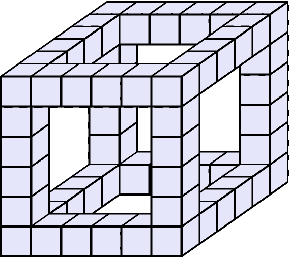 Кубворд — особый вид кроссворда. Для построения кубворда сначала выбирается положительное целое число \(a\) — длина стороны куба. Затем строится большой куб, состоящий из \(a \times a \times a\) единичных кубиков. У большого куба 12 ребер. После этого выкидываются все единичные кубики, которые не касаются ребер большого куба. Рисунок ниже показывает, что получится при \(a=6\).