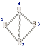 Например, на рисунке все холодильники защищены. С другой стороны, если есть \(n=2\) холодильника и только одна цепь (которая их соединяет), то оба холодильника не являются защищенными (оба холодильника могут быть открыты не только его владельцем, но и другим человеком).