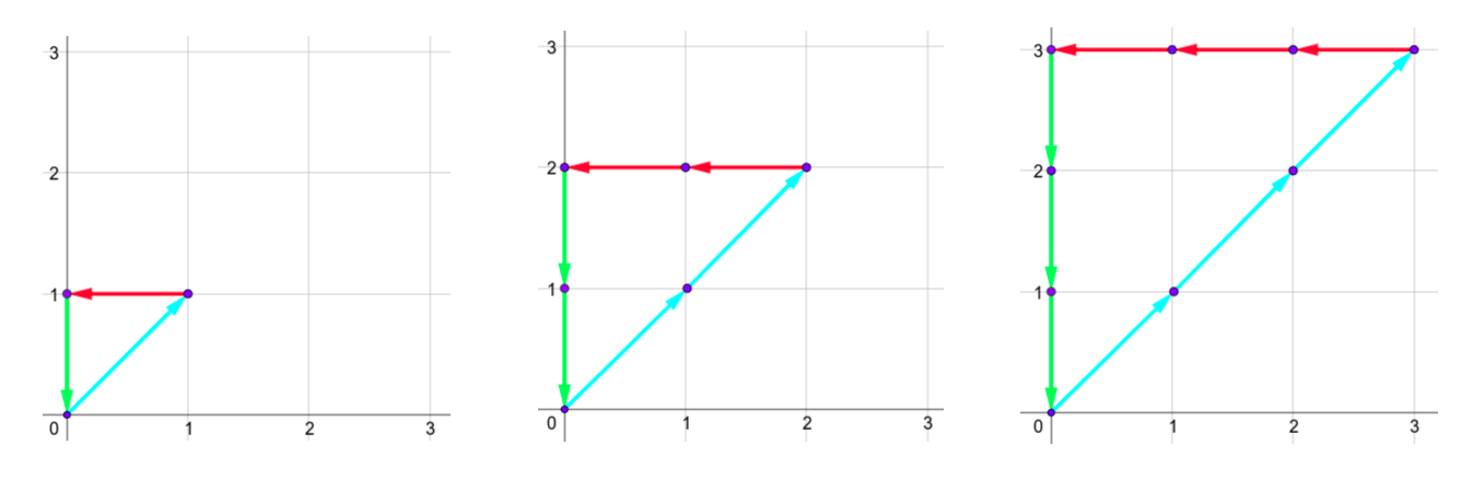 - Выберите один из векторов и отложите отрезок из текущей точки, равный этому вектору. То есть, если ваша текущая точка имеет координаты \((x, y)\) и вы выбираете вектор \((u, v)\), нарисуйте отрезок из текущей точки в точку с координатами \((x + u, y + v)\) и встаньте в точку \((x + u, y + v)\).