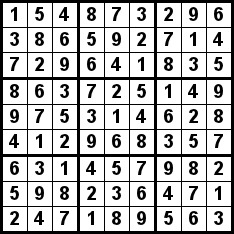 Вам дано корректное решение головоломки судоку. Если вы не знаете, что такое судоку, то вы можете прочитать об этом здесь.
