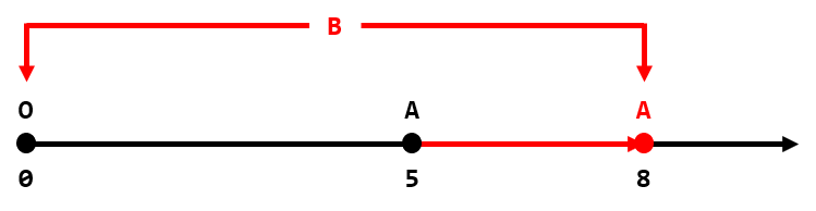 В первом наборе входных данных (изображение выше), если мы выберем координату \(B\) как \(2\), то модуль разности будет равен \(|(2 - 0) - (4 - 2)| = 0\) и нам не нужно передвигать \(A\). Поэтому ответ равен \(0\).