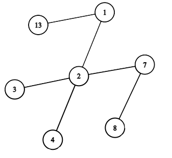 В третьем наборе входных данных дано дерево из трёх вершин. В результате применения первой операции в нём остаётся всего \(1\) вершина (с номером \(2\)), в результате второй операции дерево становится пустым.
