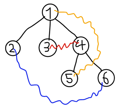 Дано некорневое дерево с \(n\) вершинами. У каждого игрока есть \(2\) специальные вершины \(x_i\) и \(y_i\).