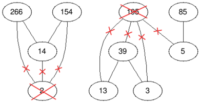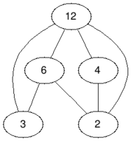 Дан неориентированный граф, состоящий из \(n\) вершин, пронумерованных от \(1\) до \(n\). Вершина \(i\) имеет значение \(a_i\), все \(a_i\) попарно различны. Между вершинами \(u\) и \(v\) есть ребро, если либо \(a_u\) делит \(a_v\), либо \(a_v\) делит \(a_u\).