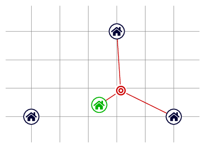 For instance, it is possible for you to meet Flavio and Francesco at the point depicted below, so that the sum of the lengths travelled by the three attendees is at most (and in fact equal to)