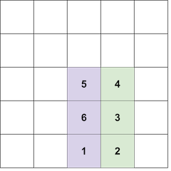 Во втором наборе входных данных, обратите внимание, что следующее размещение блоков не является корректным, так как Вы не можете разместить блок \(6\) ниже блока \(5\):