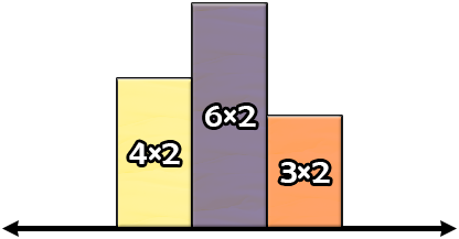 - Нижняя грань каждого ломтика — это отрезок на оси x.