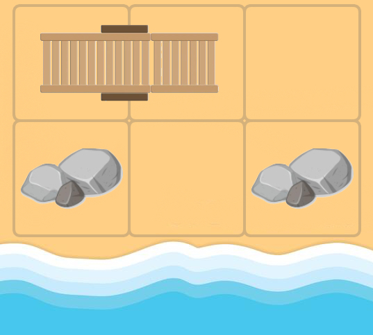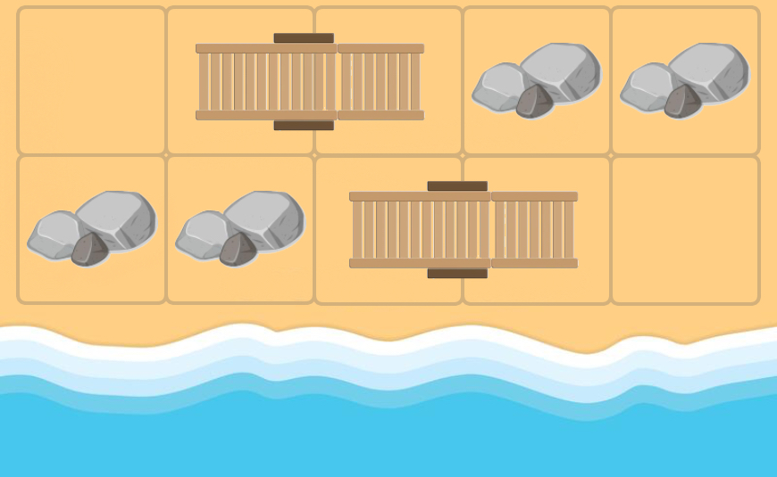 В любой момент времени каждый лежак занимает две соседние клетки, не содержащие ничего другого. Вы можете двигать одновременно максимум один лежак.