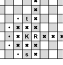- the black king cannot move to a square which is under attack by any white piece. A square is under attack if a white piece can reach it in one move according to the movement rules;
