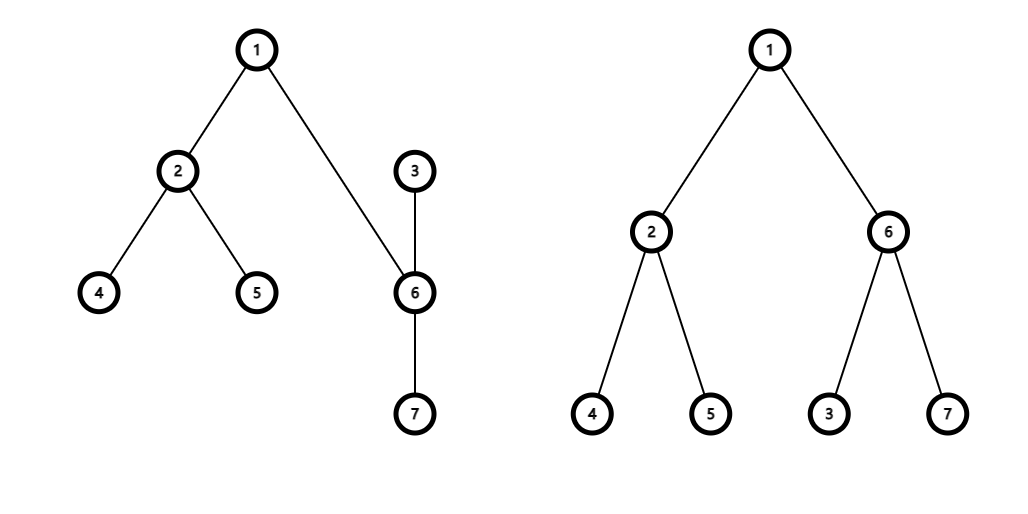 После поворота тяжелого сына вершины \(3\) (которым является \(6\)) вверх, дерево будет выглядеть следующим образом: