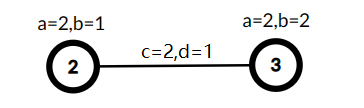 Выбрали вершины \(2\) и \(3\) как \(S'\), использовали ребро \((1,2)\) с \(c_j = 2\) и \(d_j = 1\), чтобы соединить эти вершины, теперь \(\min(A,C)=2,B+D=4\), стоимость равна \(8\). Пусть \(A\) — минимум из значений \(a_i\) в \(T'\), и \(C\) — минимум из значений \(c_i\) в \(T'\). Пусть \(B\) — сумма значений \(b_i\) в \(T'\), и \(D\) — сумма значений \(d_i\) в \(T'\). Определим \(\min(A, C) \cdot (B + D)\) как стоимость \(T'\). Вам нужно найти максимально возможную стоимость \(T'\).