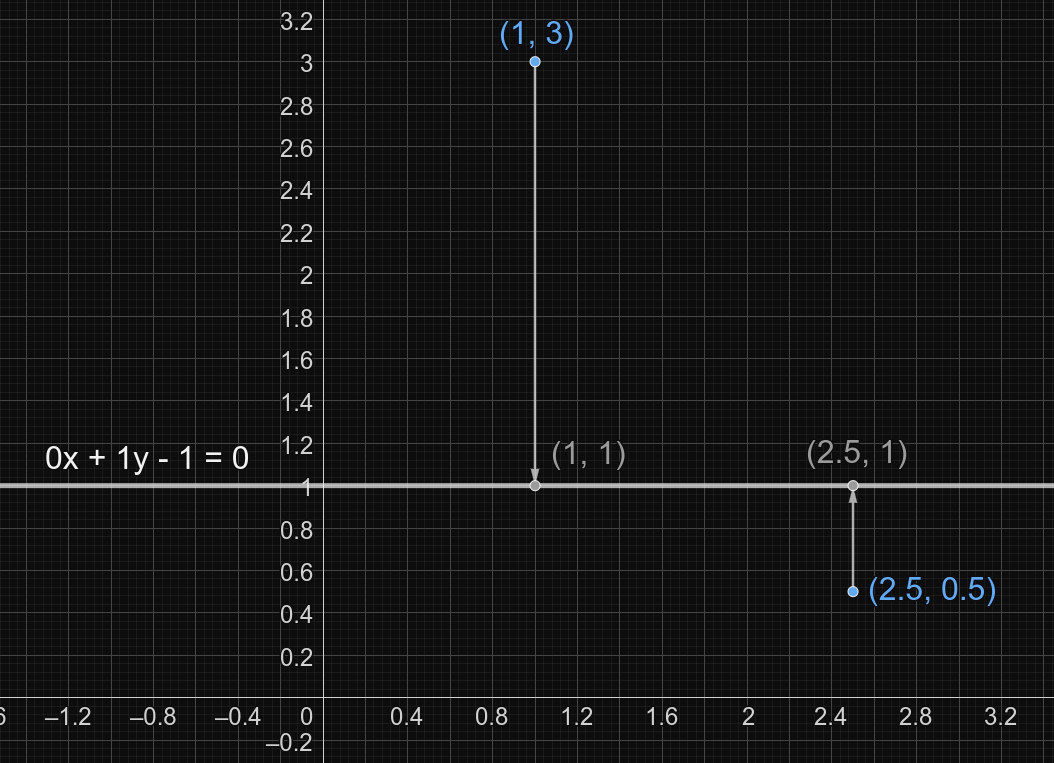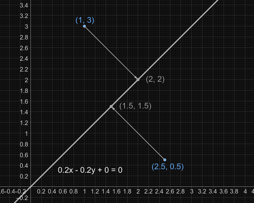 В примере загаданные точки \((1, 3)\) и \((2.5, 0.5)\)