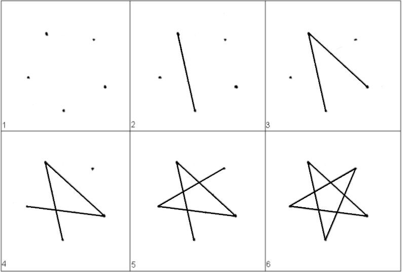 - все звезды должны быть нарисованы одним движением (то есть нельзя отрывать руку во время рисования);