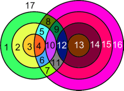В прошлом году в Берляндии была построена самая большая площадь в мире. Известно, что площадь можно представить как бесконечную плоскость с введенной декартовой системой координат. На этой площади было нарисовано два множества концентрических окружностей. Назовем (K, z)-множеством набор концентрических окружностей с радиусами 1, 2, ..., K и с центром в точке (z, 0). Так, на площади были нарисованы (N, x)-множество и (M, y)-множество. Требуется определить, на сколько частей эти множества поделили площадь.