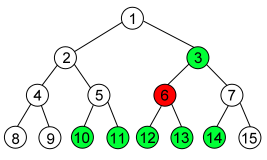 - У каждой внутренней вершины i (i ≤ 2h - 1 - 1) есть левый потомок с номером 2i и правый потомок с номером 2i + 1
