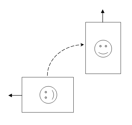 На следующем рисунке изображены кадры, полученные с не повёрнутой камеры, затем с повёрнутой на 90 градусов по часовой стрелке, затем с повёрнутой на 90 градусов в обратную сторону. Стрелками показано направление на «истинный верх».
