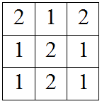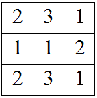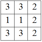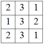 - Картина представляет собой квадрат 3 × 3, в каждой клетке которого стоит целое число от 1 до n, при этом в различных клетках могут находиться как различные, так и одинаковые числа.
