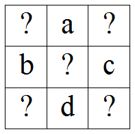 - Четыре известных числа a, b, c и d были расставлены так, как показано на рисунке ниже.