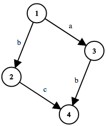 Играют Макс и Лукас. Первой ходит Макс, потом ходит Лукас, затем снова Макс и так далее. У каждого игрока есть камешек, изначально расположенный в некоторой вершине. Каждый игрок в свой ход должен передвинуть свой камешек вдоль одного ребра (игрок может передвинуть камешек из вершины v в вершину u, если есть ребро из вершины v в u). Если игрок передвигает камешек из вершины v в вершину u, то «символом» этого раунда называется символ, написанный на ребре из v в u. Есть одно дополнительное правило: ASCII код символа раунда i должен быть не меньше, чем ASCII код символа раунда i - 1 (для i > 1). Раунды нумеруются для всех игроков вместе, иными словами, Макс ходит в нечетных раундах, в Лукас — в четных. Игрок, который не может сделать ход, проигрывает. Камешки могут находиться в одной вершине в одно и то же время.