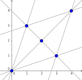 Точки множества \(S\) и все возможные прямые \(l\) показаны на рисунке ниже.