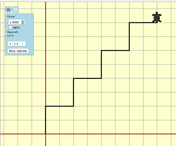 Напишите программу для Черепахи рисования четырех ступенек со стороной 2 клетки