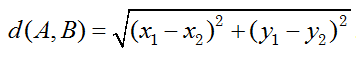 Истинный центр кластера, или центроид, – это одна из звёзд на графике, сумма расстояний от которой до всех остальных звёзд кластера минимальна. Под расстоянием понимается расстояние Евклида между двумя точками A(x1, y1) и B(x2, y2) на плоскости, которое вычисляется по формуле: