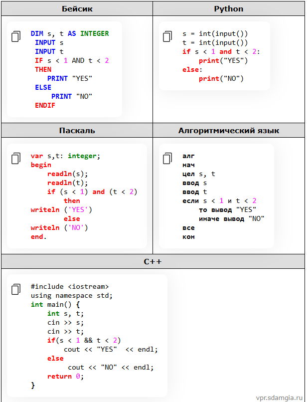 Ниже приведена программа, записанная на пяти языках программирования.