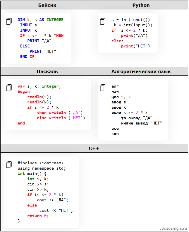 Ниже приведена программа, записанная на пяти языках программирования.