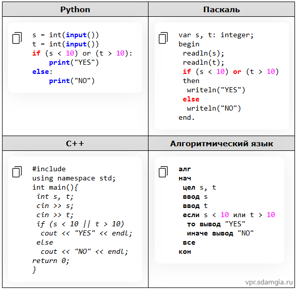 Ниже приведена программа, записанная на четырёх языках программирования.