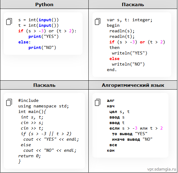 Ниже приведена программа, записанная на четырёх языках программирования.