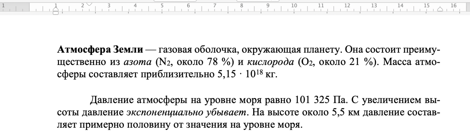 Задача . Форматирование: Атмосфера Земли
