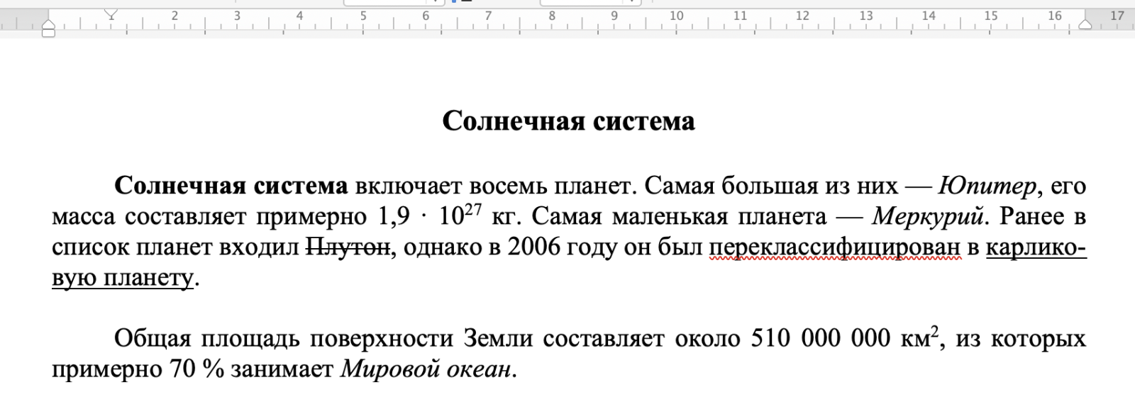 Задача . Форматирование: Солнечная система